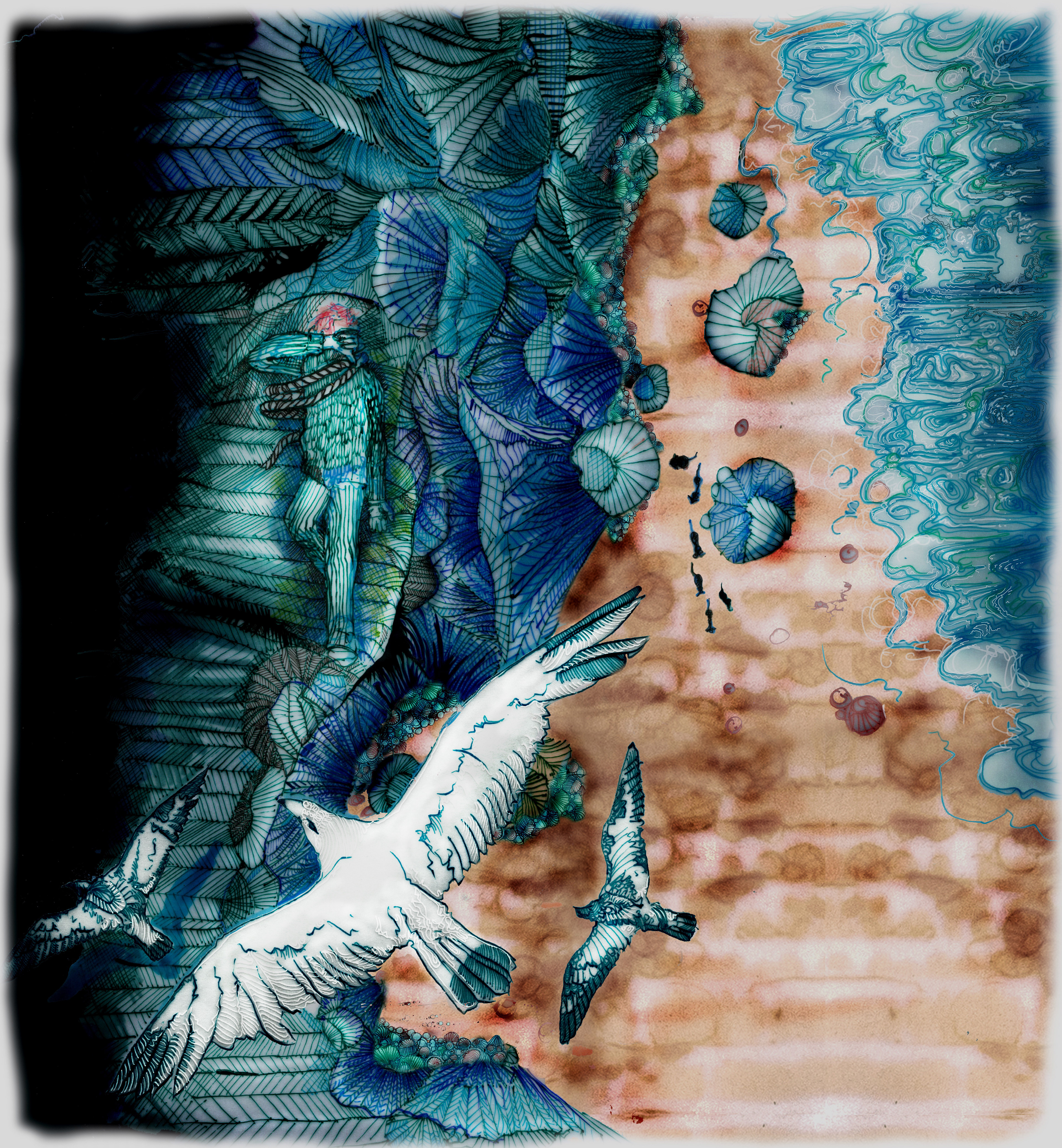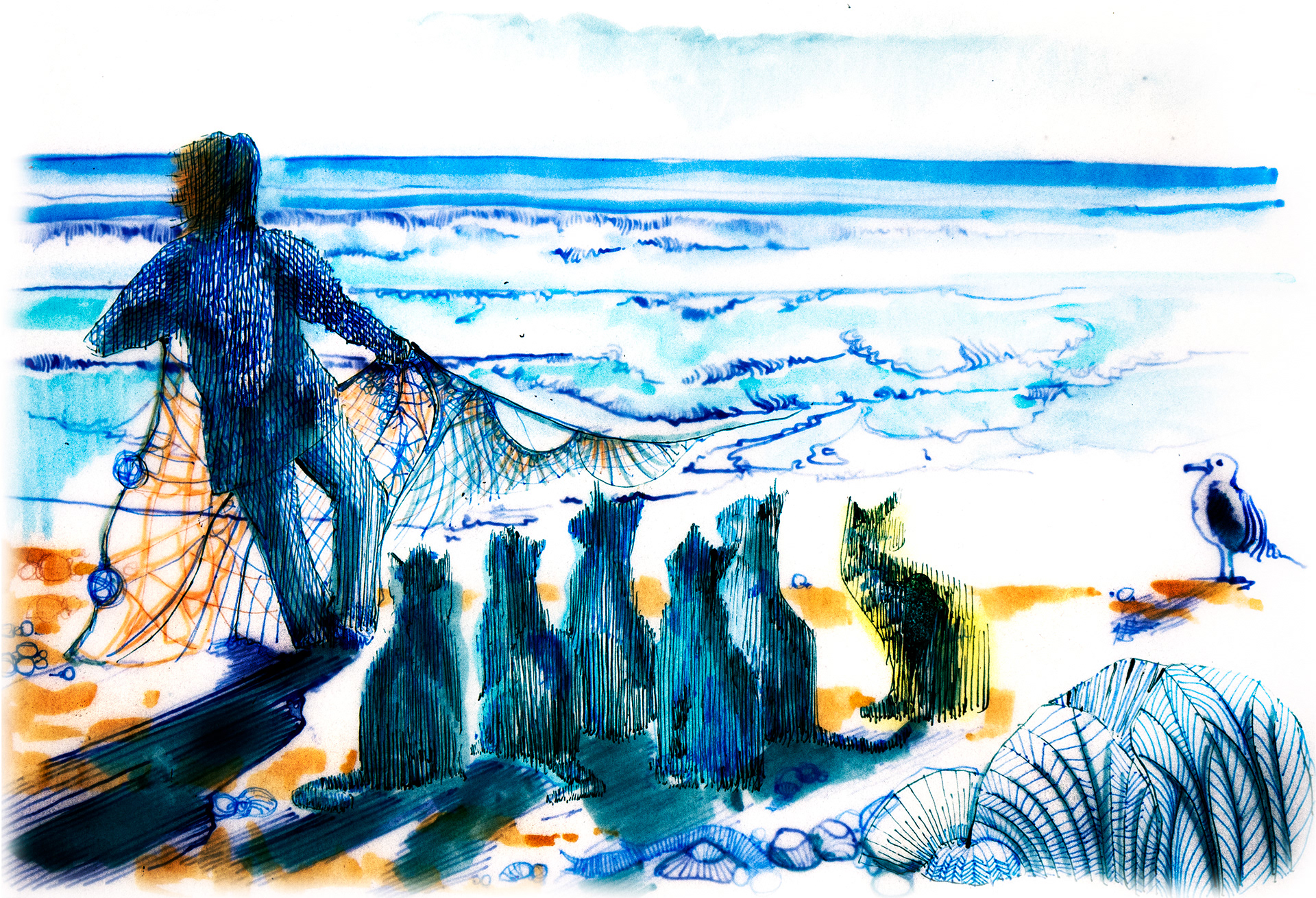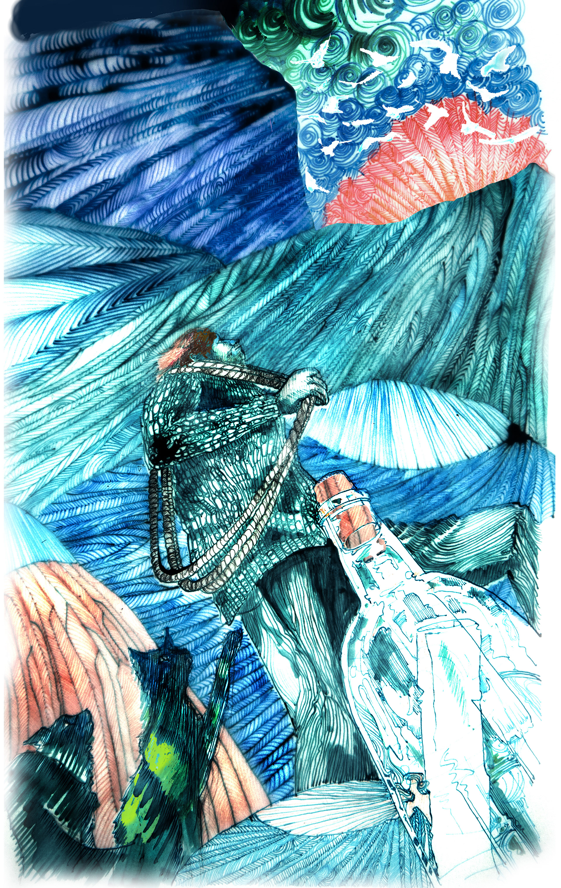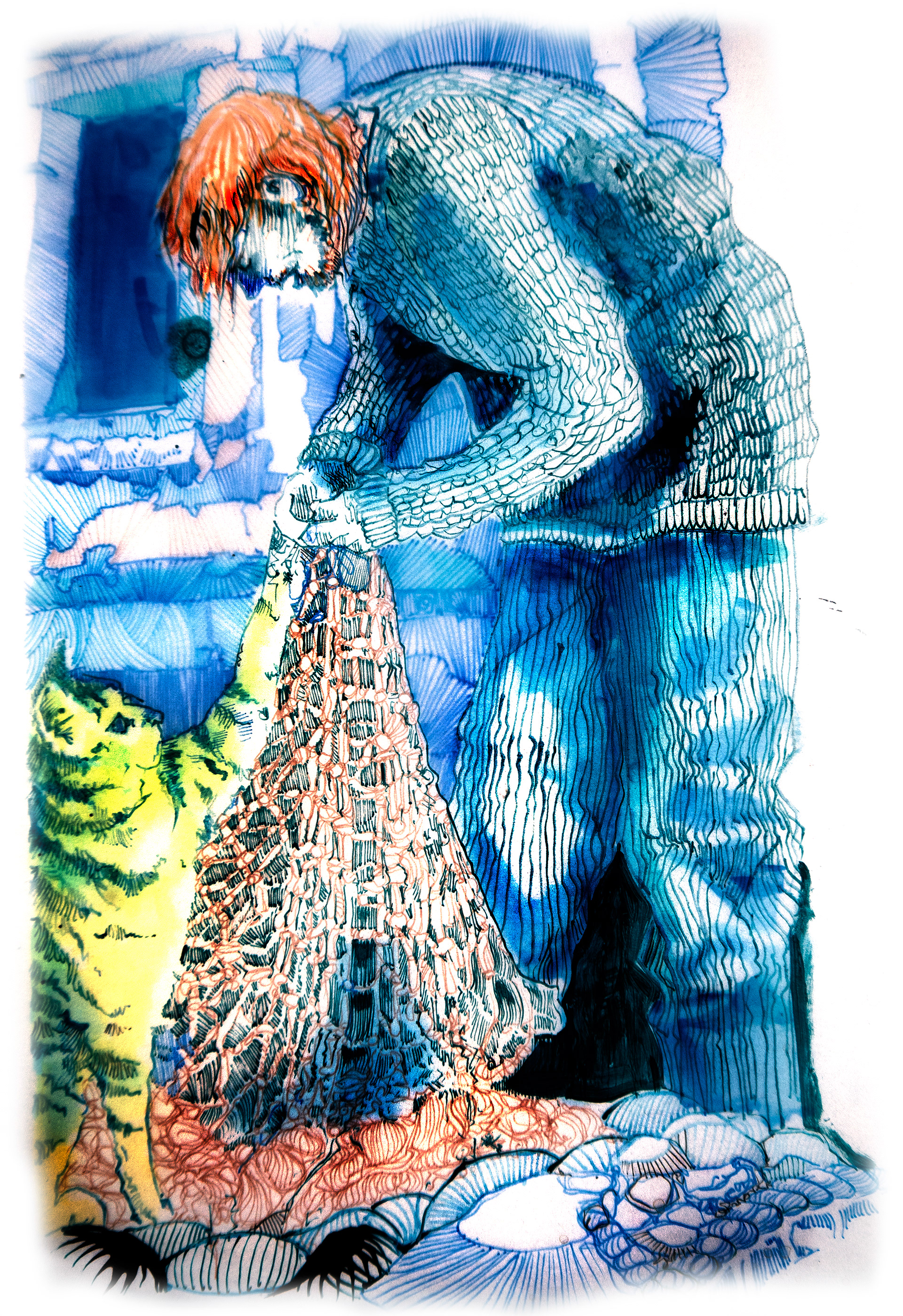 An unsettling narrative about death, delusion, contentment and cats. All the images are hand drawn in dip pen on layers of tracing paper and illuminated over a light