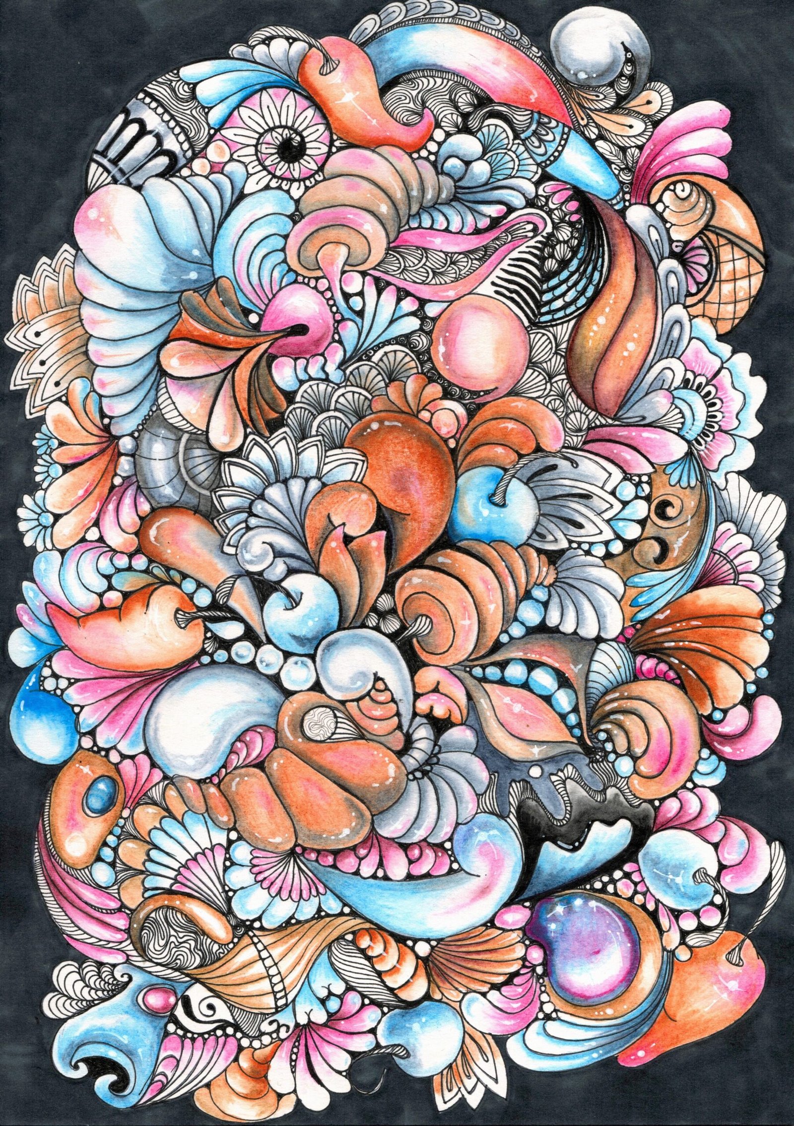 Doodles are great, doodles are drawing without pressure, without judgment. Doodles are instinctive, we all doodle and no one comes along to tell us that we’re doing it wrong, because they’re ‘just’ doodles. But doodles are really drawing practice, and the best way to gain in confidence with drawing – and confidence in 90% of the battle when it comes to art – is just to draw. I proved this to myself by using doodle to overcome my feelings of inadequacy when I got a place on an MA illustration course, where starting to do a daily doodle and not worrying about what it was, slowly helped me reconnect with my drawing skills and help it become unconscious and fluid again.